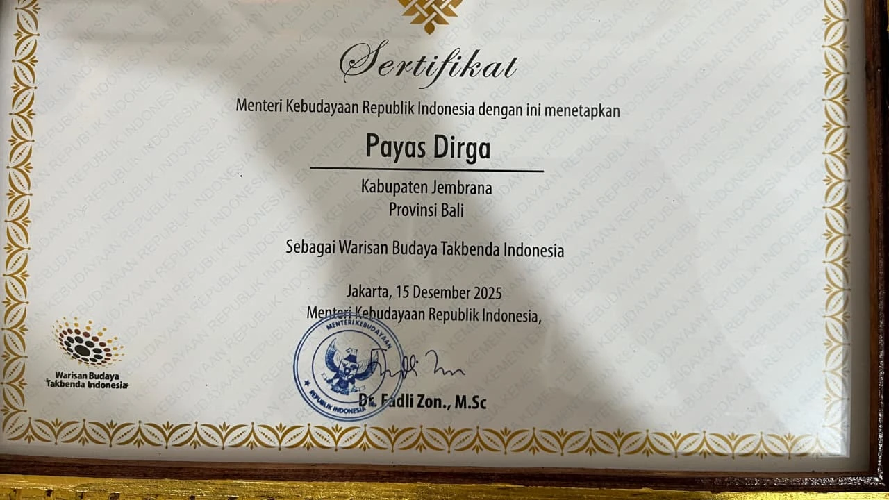 "Penetapan ini tertuang dalam sertifikat resmi dengan nomor registrasi 034/WB/KB.00.01/2025 untuk Payas Dirga dan 035/WB/KB.00.01/2025 untuk Kain Tenun Loloan. Dengan tambahan dua karya ini, hingga tahun 2025 total sebanyak 10 budaya asal Jembrana telah tercatat sebagai warisan budaya nasional yang dilindungi."