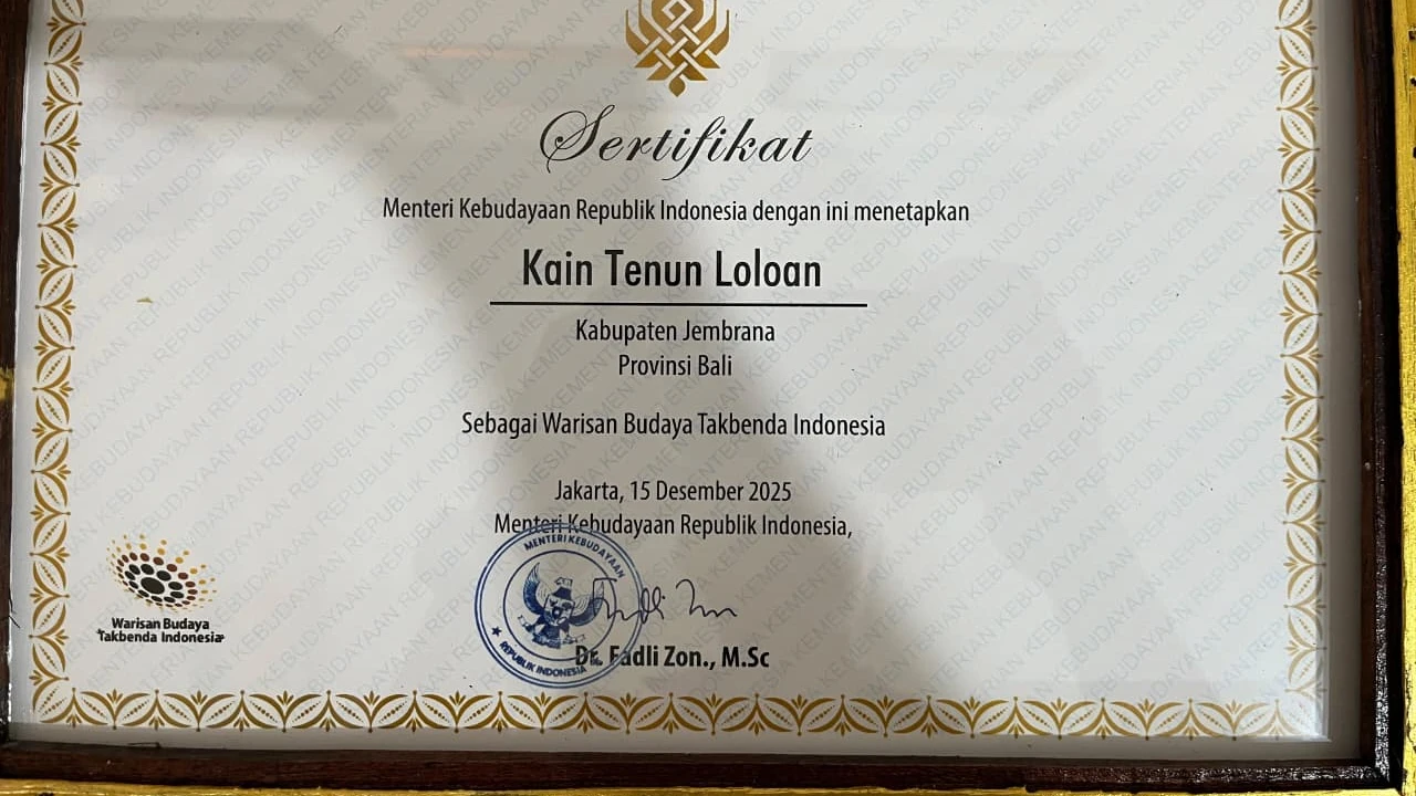 Jembrana - Kekayaan budaya Kabupaten Jembrana kembali mendapat pengakuan di tingkat nasional. Dua karya budaya khas Bumi Makepung, yakni busana pengantin Payas Dirga dan Kain Tenun Loloan, resmi ditetapkan sebagai Warisan Budaya Tak Benda (WBTB) Indonesia tahun 2025 oleh Kementerian Kebudayaan Republik Indonesia.